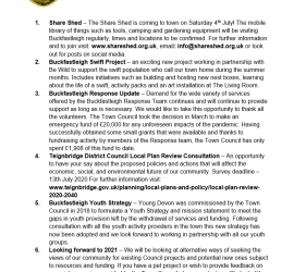 Buckfastleigh Town Council Meeting 20 May 2020 – Key Messages