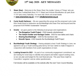 Buckfastleigh Town Council Meeting 15 July 2020 – Key Messages