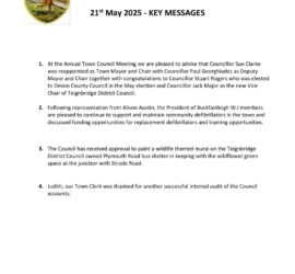 A review of Town Council activities during the year and a look ahead to future plans by Councillor Sue Clarke, Mayor of Buckfastleigh Read here