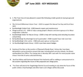 Buckfastleigh Town Ranger’s Summer 2025 Report. Well, it’s certainly been a very busy couple of months, (as always). Summer has its own unique set of issues that need attention. Buckfast bus stop at the top of Higher Mill lane has had coat of paint and is looking much refreshed. Duckspond pond has been de weeded. […]