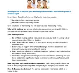 Amity Parental Relationship eLearning programmes for the community These programmes are designed for anyone working with or supporting families in Devon. They provide invaluable tools and understanding about relationships and communication. The courses are self-paced, allowing you to dip in and out whenever you have time. Each course usually takes between 1 to 2 hours […]