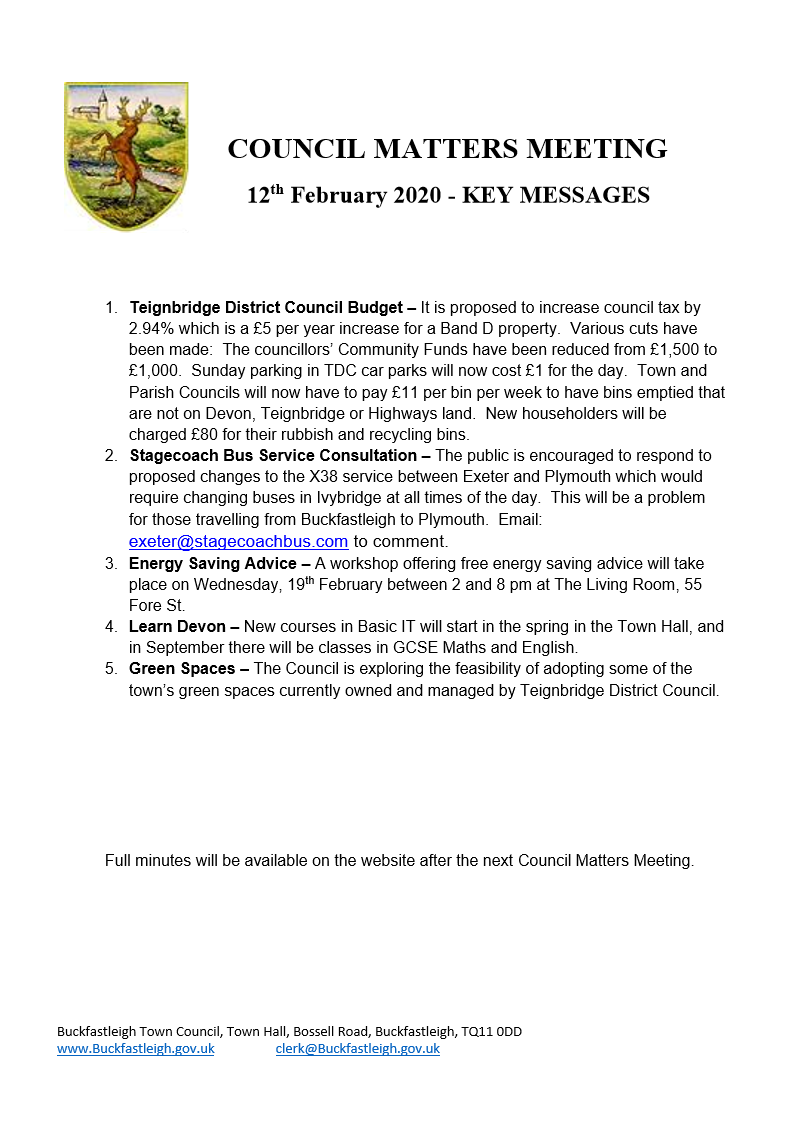 Council Matters Meeting 12 February 2020 – Key Messages