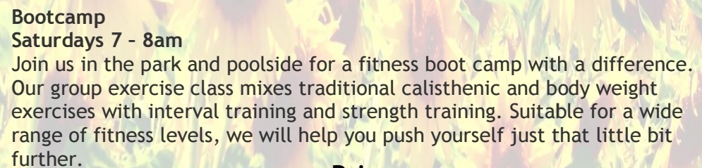 Boot Camp will run every Saturday through the summer. You can buy a book of 12 tickets for £50 – 12 for the price of 10. Further info: phone 01364 642222 or email bfl.pool@yahoo.co.uk