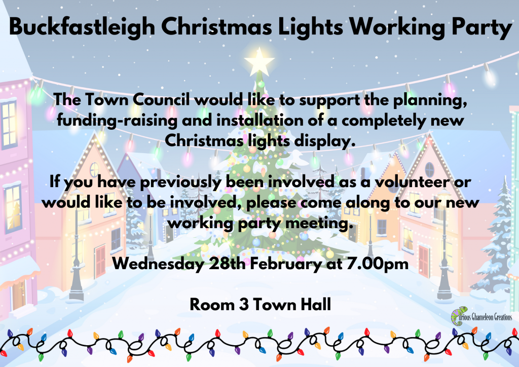 The Town Council would like to support the planning, fund-raising and installation of a completely new Christmas lights display. If you have previously been involved as a volunteer or would like to be involved, please come along to our new working party meeting.