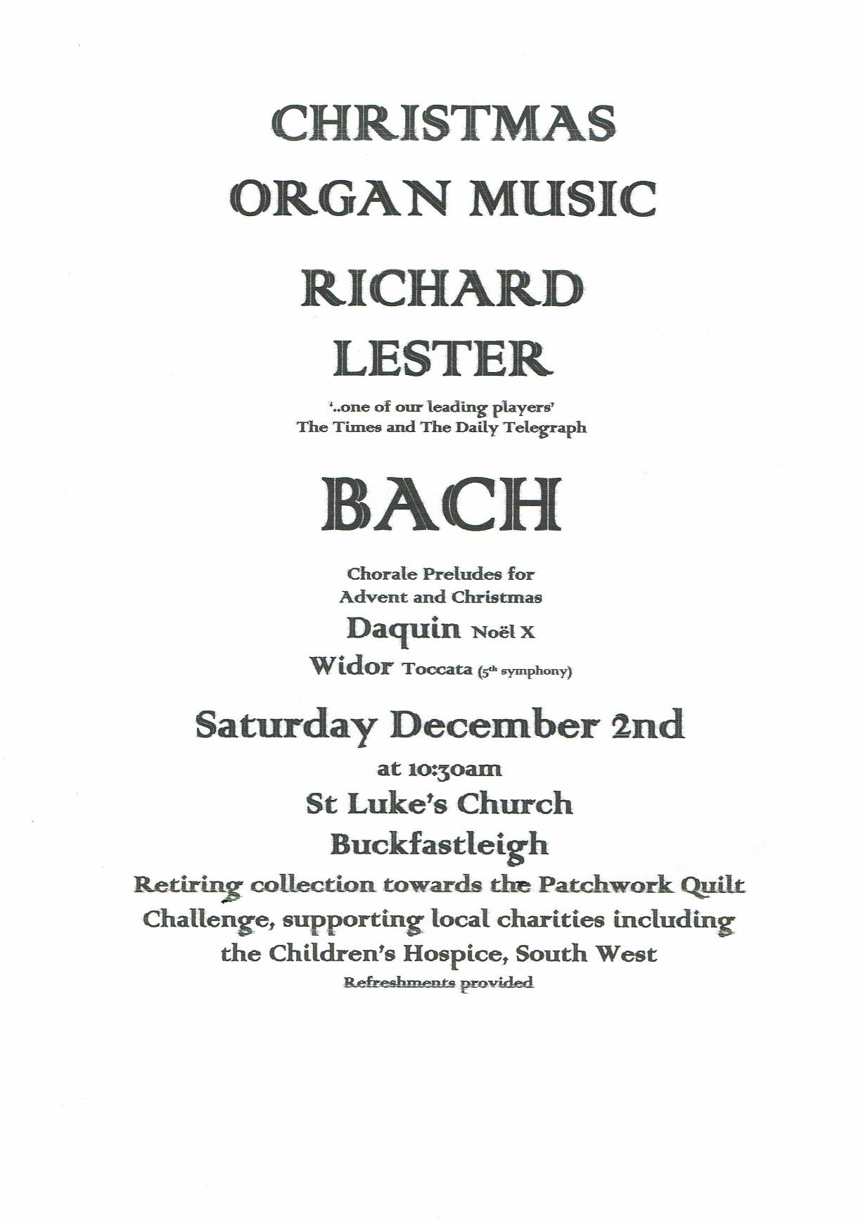 Christmas Organ Music with Richard Lester at St Luke’s Church Saturday 2nd December 10:30am