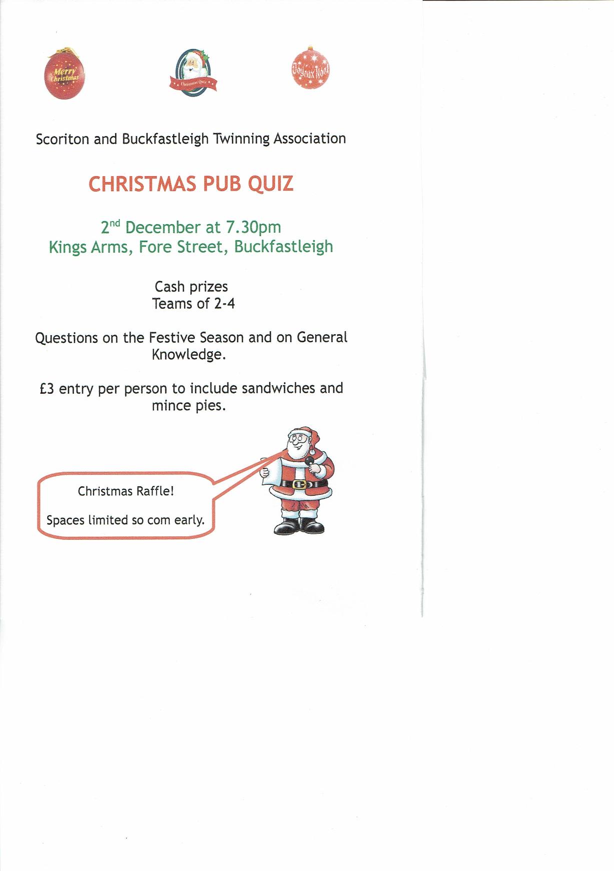 Christmas Pub Quiz@The Kings Arms Buckfastleigh – Saturday 2nd December at 7:30pm
