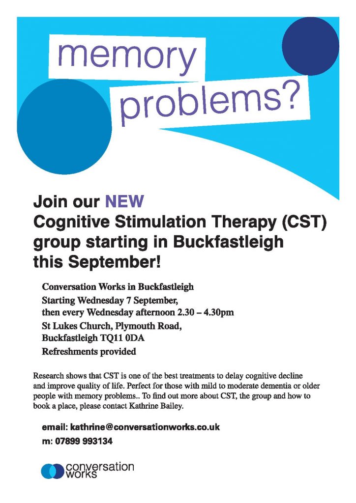 Memory problems? New Cognitive Stimulation Therapy classes starting in Buckfastleigh.