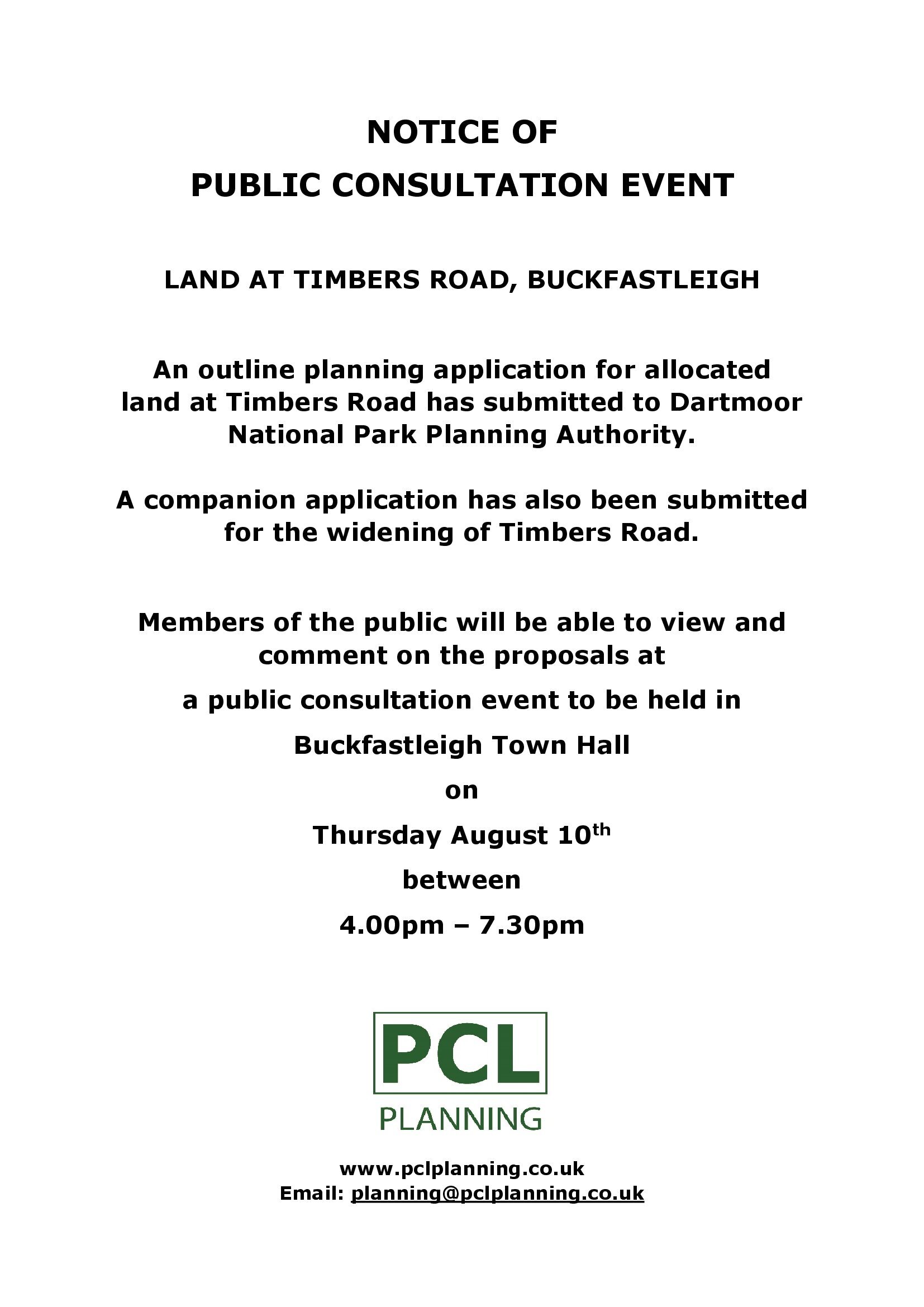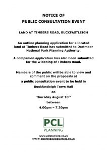 Notice of Public Consultation – Land at Timbers Road, Buckfastleigh