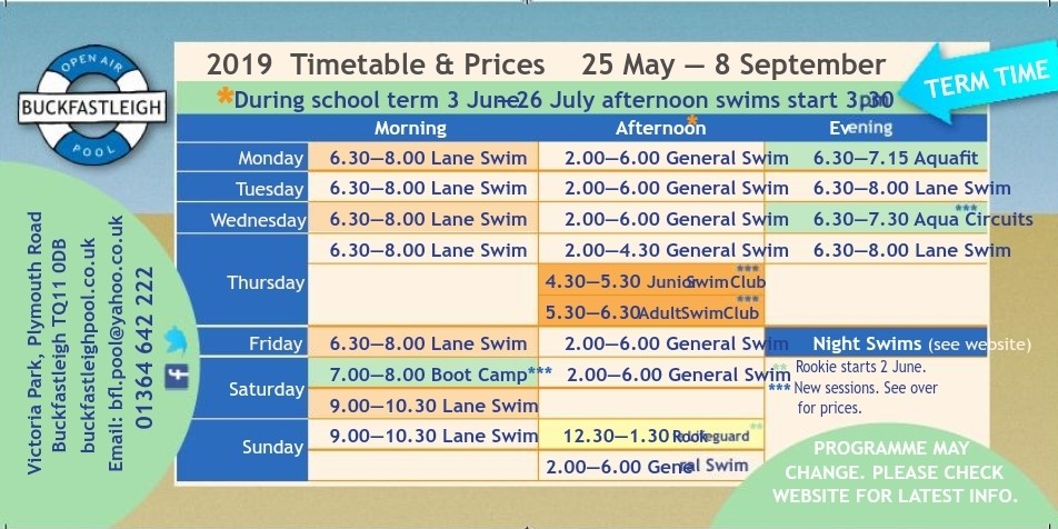 During half-term (25 May to 2 June), swim times are 2-6 pm in the afternoons every day. During term times (3 June to 26 July), weekday afternoon swims start at 3.30 pm.