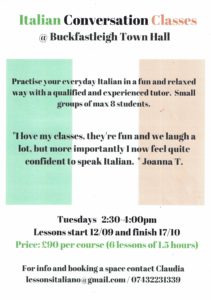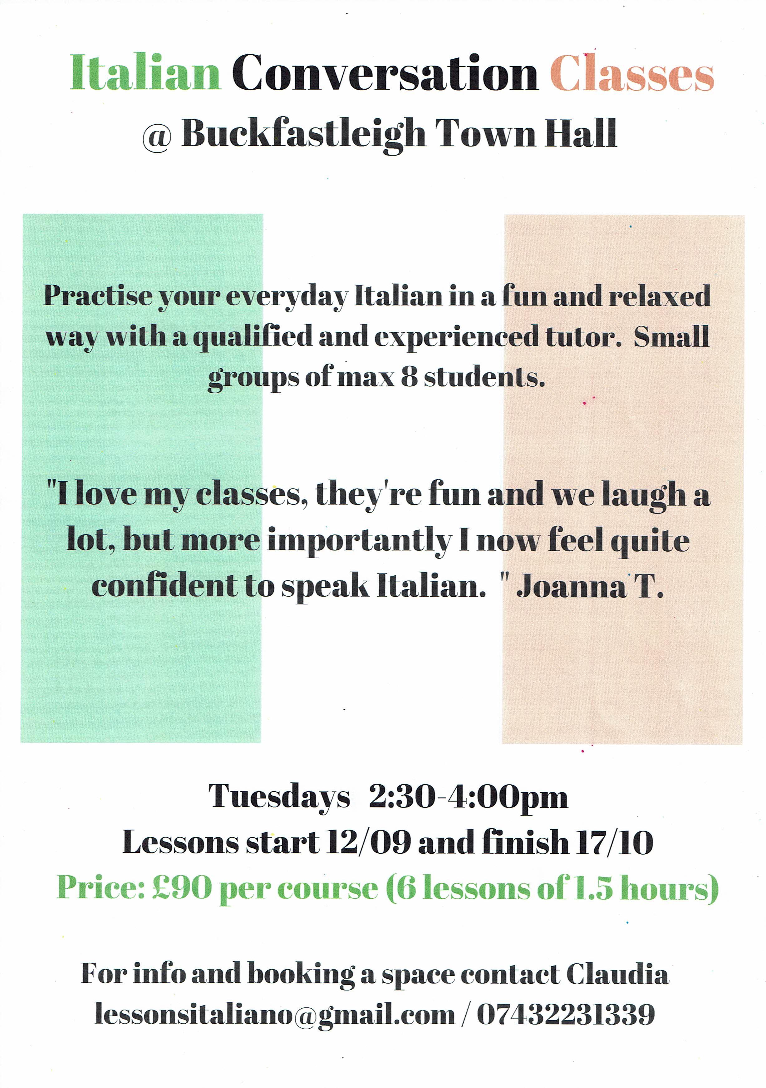 Italian Conversation at Buckfastleigh Town Hall – starting 12th September 2017 at 2:30pm