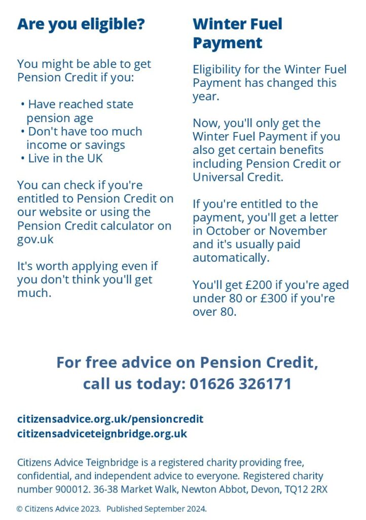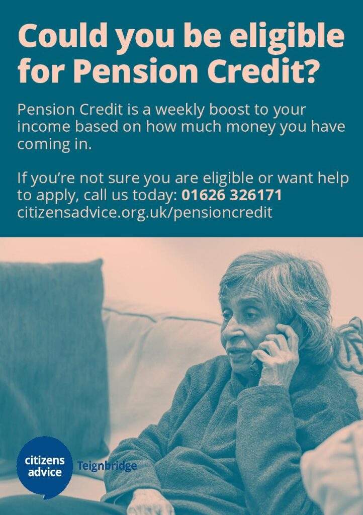 Citizens Advice Teignbridge is running a Pension Credit project until the end of December to support clients to check if they can claim Pension Credit and to make a claim where applicable.