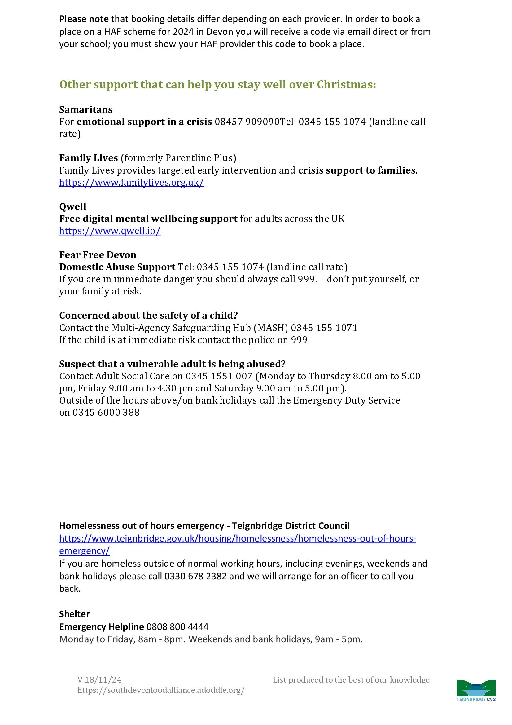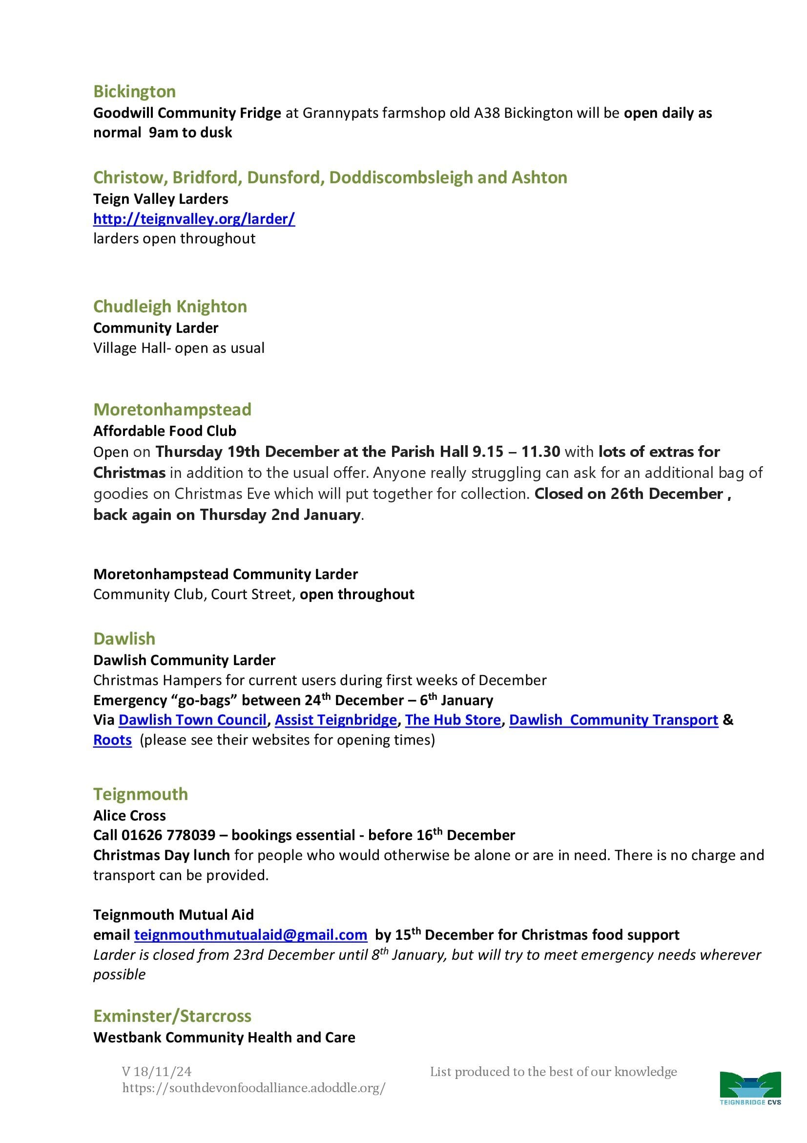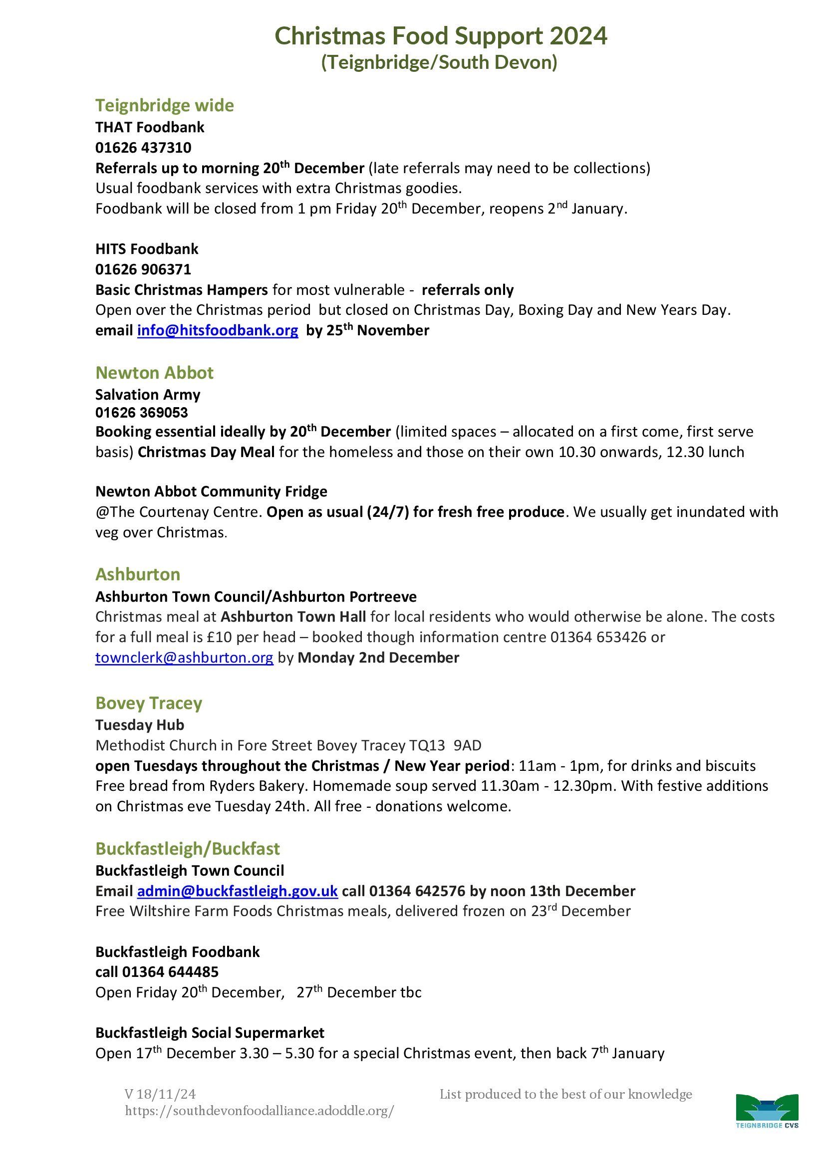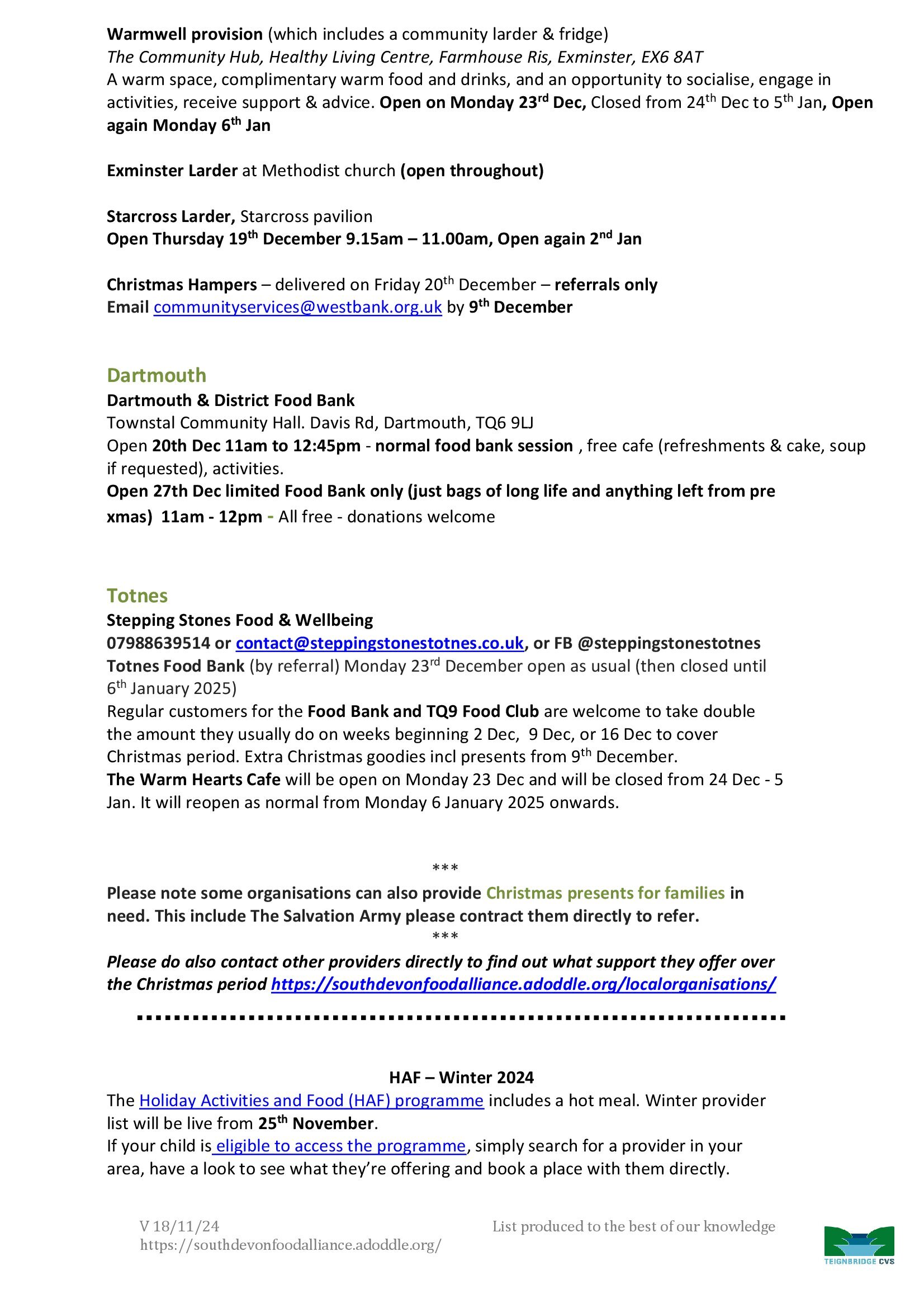 Teignbridge Christmas Food, Warmwell & other Wellbeing Provision