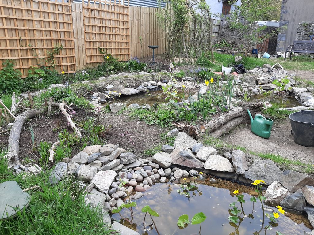 The transformation in the garden behind the Town Hall is a delight to see. Last October, the Town Council engaged Charlie Narewski Scullion to create a beautiful and wildlife friendly area that could be enjoyed by members of the public and provide habitat for insects, birds, amphibians and reptiles. Since then he has been working hard, first alone and now with people from the Veterans Farm-Able Foundation, clearing rubbish, creating ponds, building insect shelters and planting wildflowers.